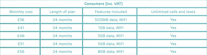 If you love your 3G handset too much to upgrade to a 4G one, there’s always 4G mobile broadband. EE is offering 4G mobile broadband plans — either via a USB stick or Wi-Fi dongle (with support for up to five devices connected at once). All these tariffs run for 18 months. There are three plans for consumers: £15.99 per month for 2GB of data; £20.99 for 3GB; or £25.99 for 5GB (including VAT) — and three for SMEs: £13.33 for 2GB; £17.49 for 3GB; and £21.66 for 5GB (excluding VAT).