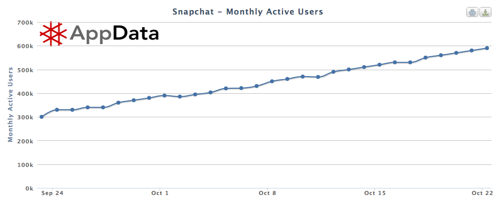 On Appdata, which can track mobile apps and how many Facebook users they have, you can see the app has a healthy growth trajectory. The daily active usage looks low with 40,000 DAU, but that’s because AppData doesn’t show Snapchat’s overall userbase. It’s the number of Snapchat users who connect to Facebook every day, which happens to be a small portion of the app’s total user base. What matters is that you can see a nice upward trend on the graph, unlike Path, which is seeing a flatline on AppData.