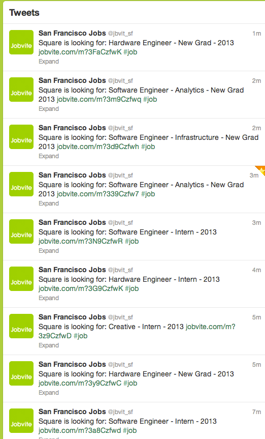 It’s time to fill up that new Square office, and it looks like the company is looking to add a slew of new engineer-types. I follow a Twitter account that spits out new jobs in the San Francisco/Valley area, and the last ten tweets have been for Square, and are engineer-related.