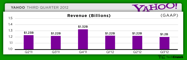 Yahoo today reported its financial results for the third quarter of 2012, its first full quarter with new CEO Marissa Mayer at the helm. Mayer is back at work full-time after taking a short maternity leave following the birth of her first child, and is expected to speak about the financial results on her first conference call with Yahoo investors as CEO later this afternoon.