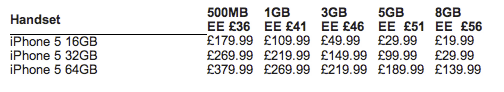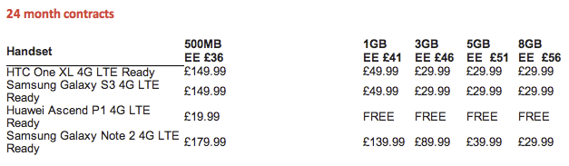 Here’s the full price break by device down for its 24 month 4GEE phone contracts: