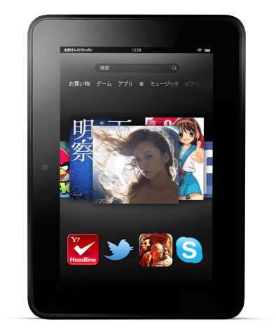 Amazon.co.jp is also introducing an all-new upgraded version of the best-selling standard definition Kindle Fire with a faster processor, twice the memory and longer battery life than the original Kindle Fire—all for an even lower breakthrough price—only ¥12,800. Meet the all-new Kindle Fire family at www.amazon.co.jp/kindlefirehd.“Kindle Fire HD is already the #1 best-selling item in the world for Amazon, and we’re thrilled to make it available for the first time in Japan. It features a stunning customized HD display, the fastest Wi-Fi, exclusive Dolby audio, powerful processor and graphics engine, 16 or 32 GB of storage and 11 hours of battery life,” said Jeff Bezos, Amazon.com Founder and CEO. “Not only does Kindle Fire HD feature the most advanced hardware, it’s also a service. When combined with our unmatched content ecosystem, unmatched cross-platform interoperability, and standard-setting customer service, we hope people will agree that Kindle Fire HD is the best 7” tablet available anywhere, at any price.”