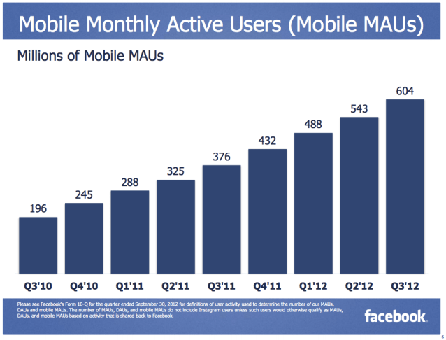 Facebook’s user growth on mobile devices makes complete sense, as most of us are on the go when we want to check in on what our friends are up to. For me, Facebook gets used the most when I’m waiting for a train, in line at a store or at a coffee shop. I actually use the desktop version very sparingly, even though I have it up in a tab. Facebook states openly that mobile is driving the site’s growth.