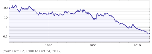 Even compared to Apple’s own market capitalization, its cash represents more than 20 percent of its gigantic $571.38 billion market cap. Yet, the ratio cash versus market cap is slowly going down, because Apple shares are raising even more. Here’s the percentage evolution: