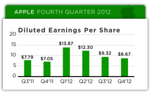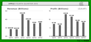 The company also recorded profits of $8.2 billion (compared to $8.8 billion in Q3, and $6.62 billion in Q4 2011), which works out to diluted earnings of $8.67 per share.
