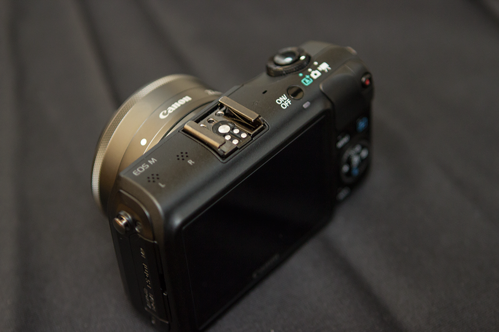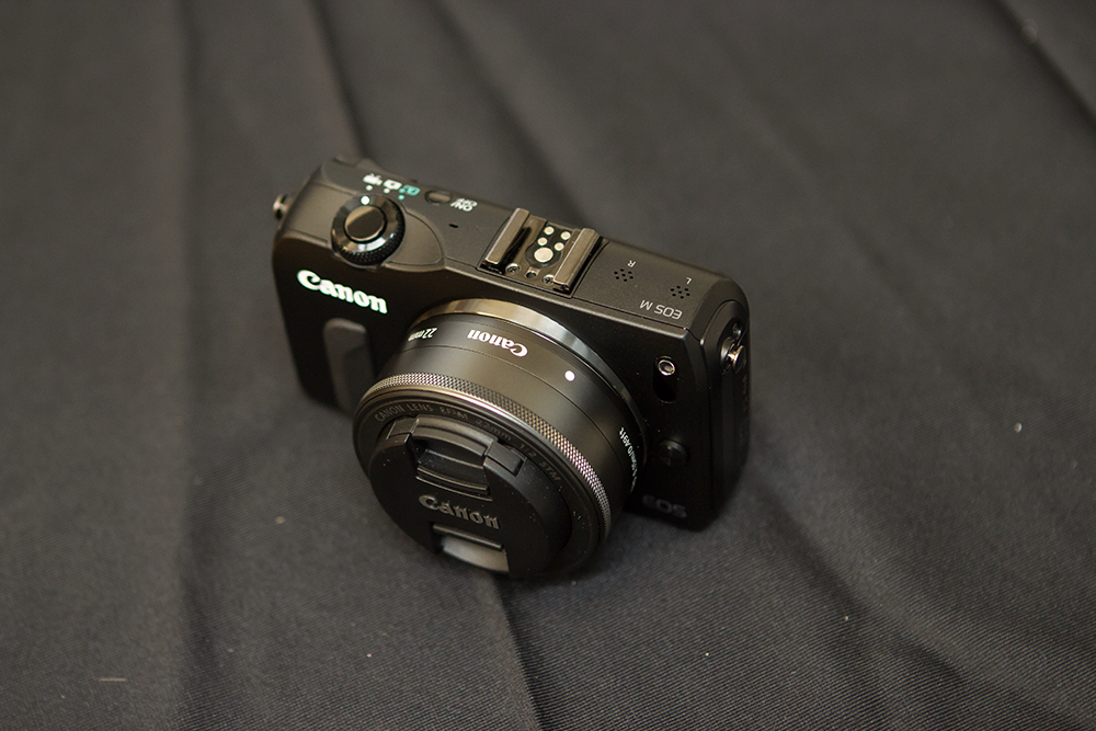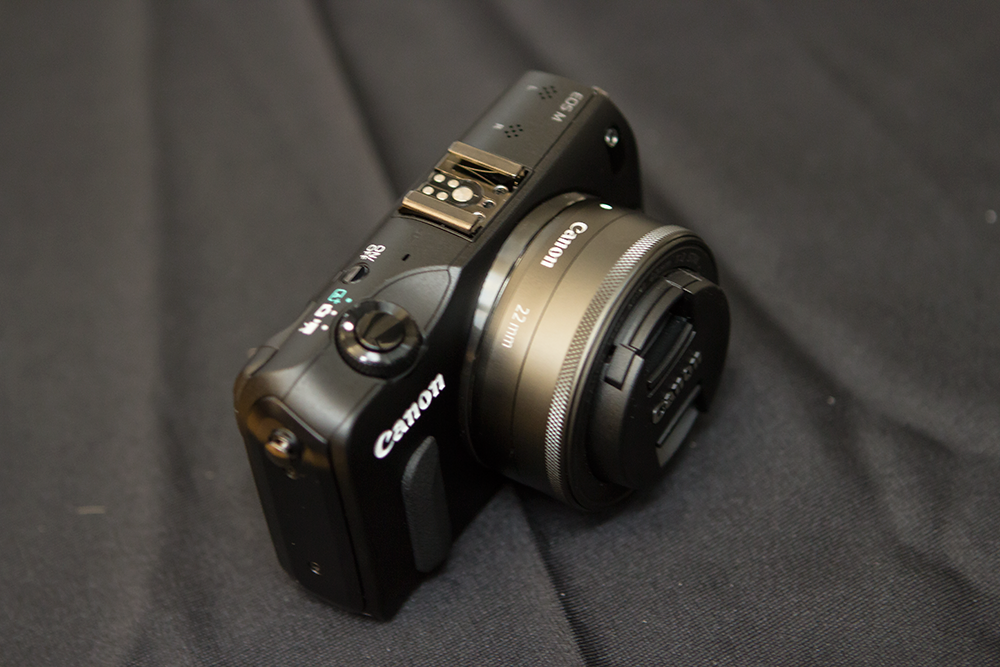 The EOS M is a surprisingly small camera. It probably seemed even more so because I was using it initially with Canon’s 24-70mm f/2.8 L lens attached via the official adapter ring (which brings with it full autofocus functionality by the way), but with the EF-M 22mm f/2 kit lens attached it’s actually pretty pocketable. It reminds me a lot of a bulkier PowerShot S100, right down to the very nice feeling matte magnesium alloy body. Also, I noticed that the 22mm lens is actually a very dark shade of grey, whereas the body is black. That’s on purpose, a Canon rep told me, and meant to ensure the lens complements both the white and black EOS M body.