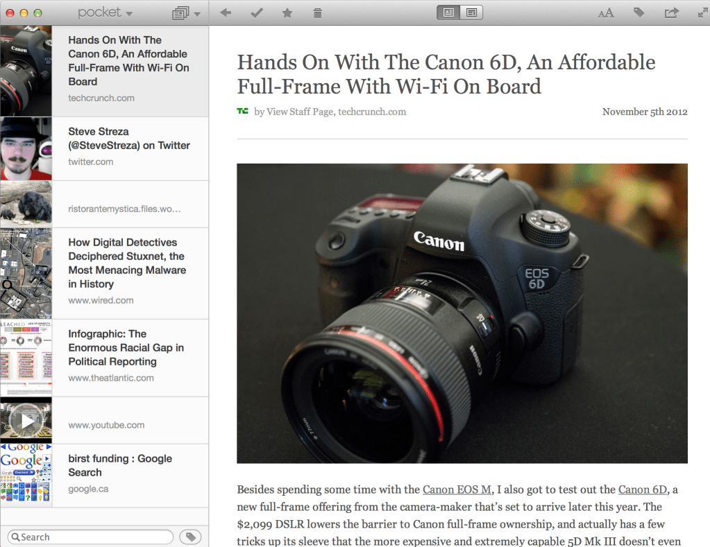 Pocket (formerly ReadItLater) delivered a new native Mac OS X app today, allowing you to save and access content for later reading from around the web. Pocket’s rebrand was all about going beyond just being an article-saving tool and becoming a catch-all scrapbook for anyone’s digital life, and the new Mac app is a good complement to that mission.