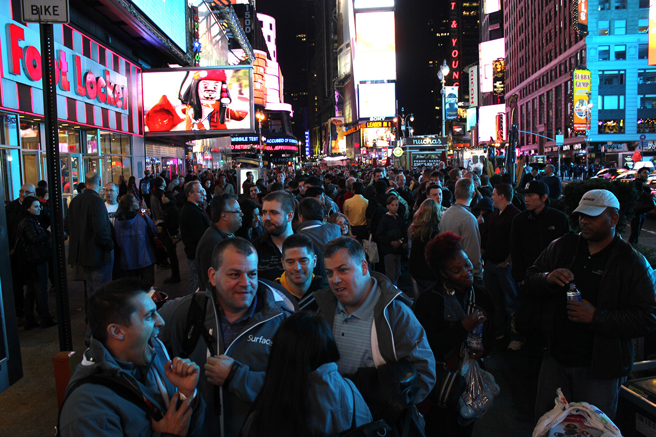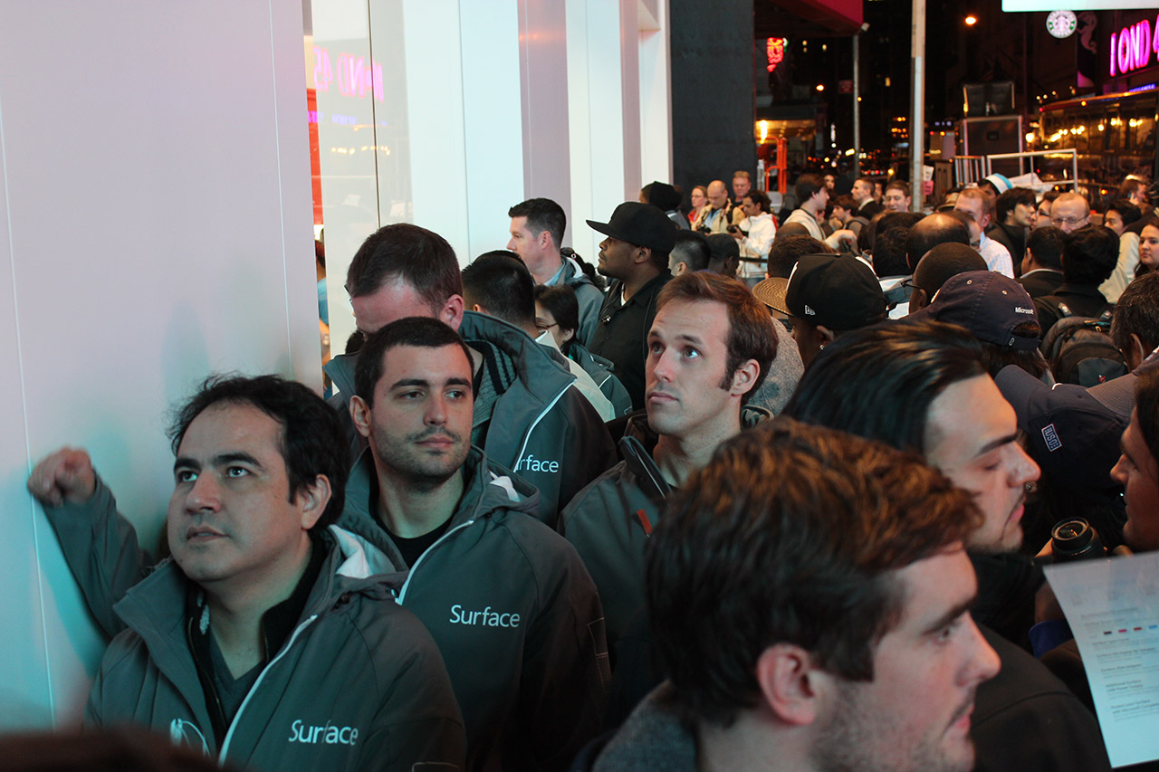 Walking through Times Square tonight, it would be hard to miss Microsoft’s promoting efforts anyway. The company has taken over the majority of billboards around the area and also set up some demo stations in the middle of the plaza. That, coupled with the company’s Surface ads and television appearances, seemed to do wonders for building awareness — while most of the people waiting in line for the Surface had heard about the device online well in advance, some of the people we spoke to remarked that they had seen the Surface touted on television.