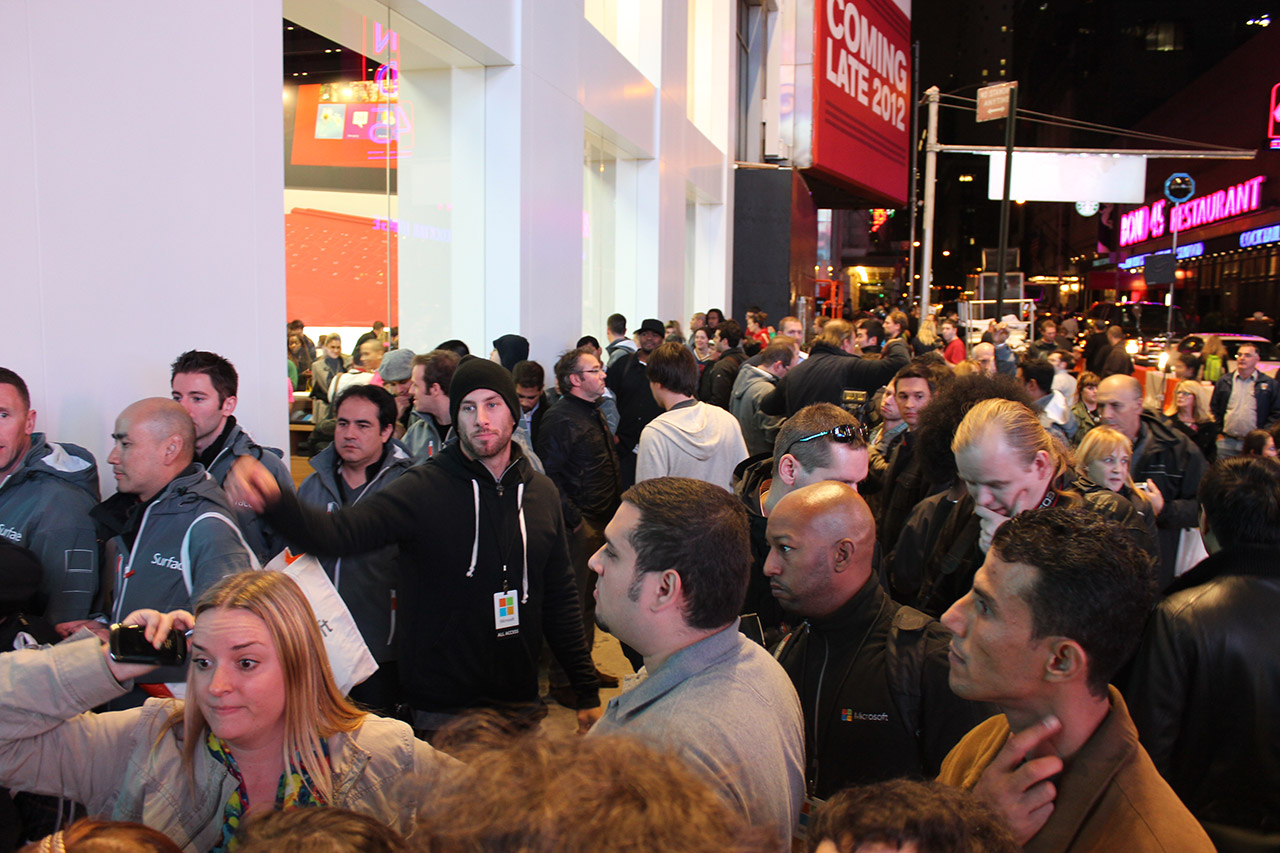 Driving through Times Square is a tricky proposition even on normal nights, but for a few moments tonight it was basically impossible to cruise down 7th Avenue. That’s because Microsoft officially kicked off sales for its new Windows RT-powered Surface tablet, and briefly closed the street to ensure none of the curious onlookers were hit by errant cabs.