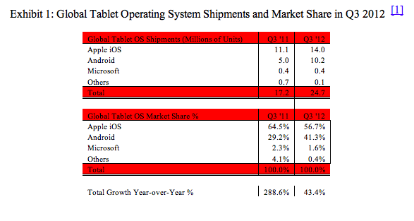 Strategy Analytics notes that these numbers are for tablets-only and not e-book readers.