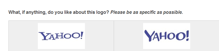 A TC reader says that he was asked to take an online survey, “and it turned out to be all about asking me to compare Yahoo’s current logo to a potential new logo,” he tells us. Here is a screenshot from that survey: