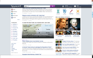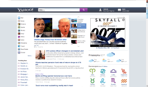 Note the drop of the serif, note that it’s not purple, and note there is still a ! — although there may be other options where Yahoo drops it. Last week Business Insider ran what it says is a leaked copy of the new Yahoo homepage, where the purple also appears to have faded somewhat. Update: A reader has sent us screen shots of that new layout now appearing (see below). The blue in these logos looks a lot closer to the blue in that design, too.