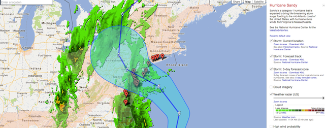 Google has a fantastic program that prepares the world for major events involving Mother Nature, and it has set up a crisis map for people on the East Coast preparing for Hurricane Sandy.