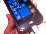 The Samsung ATIV S is a whopper of a Windows Phone. Indeed it looks like Samsung has repurposed the Samsung GSIII’s generous form to accomodate Microsoft’s latest WP8 OS. The phone is very thin and light which certainly helps keep the heft down, and it felt polished rather than plasticky — the back sports a brushed metallic effect, locked under lashings of varnish. But if you’re not a fan of reflective surfaces then its blinged-up silvery form and all-over glossy sheen might get tiresome/distracting.