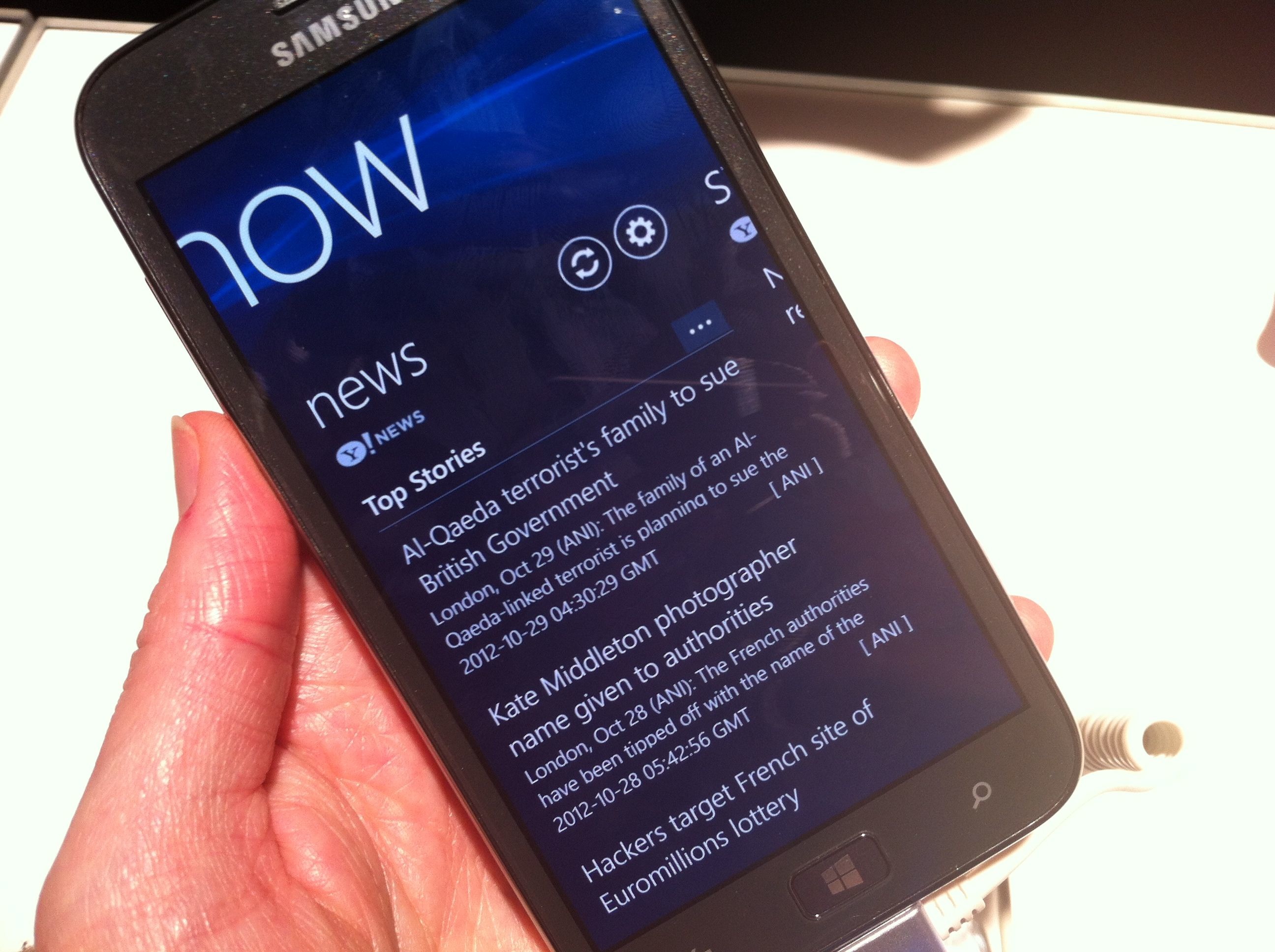 Samsung has added a few of its own apps to the phone in an effort to differentiate the device from other Windows Phones, although these look a little lightweight when compared to the mapping, navigation and traffic apps Nokia preloads on its Windows Phones. You get a WhatsApp-style messaging app called ChatOn, a journal app called Mini Diary, a news aggregator called Now and an NFC wallet app. Samsung is also preloading some of its own lenses (i.e. filters) on the camera app — although these were not loaded on the device I saw.