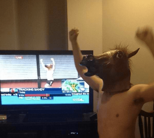Nowhere in “28 Days Later” do you see people Gangnam-styling in the background of news reports of oncoming floods, or a guy running around in a horse head mask defying Mother Nature, Instagramming his costume and alerting the Internet about his plan beforehand. (Horse Head Guy will you marry me?) But that’s what happened in the social media storm and resulting Internet campfire that surrounded Hurricane Sandy: Countless quips about Sandy-themed Halloween costumes and the #Frankenstorm interspersed with sincere entreaties to “Stay safe” or “disaster updates” from friends.