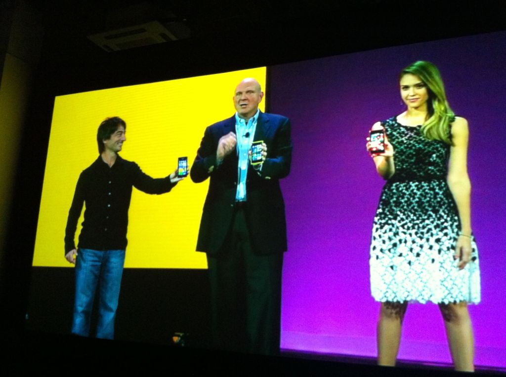 At Windows Phone 8 launch event yesterday, Ballmer took the stage to talk up the new platform, telling the assembled press throng: “People all over the world are going to fall in love with Windows Phone” — and demonstrating how his phone could never be mistaken for model Jessica Alba’s.