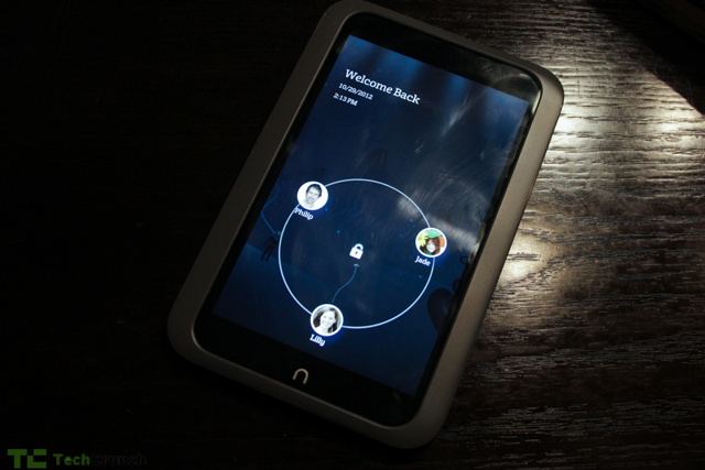 Turning the device on brings you to a page that shows the multiple users on the device. Dragging an icon to the center logs you in and brings up a specialized view catered to the user. Kids, for example, see a different view than adults and Dad can see a different view than Mom, depending on what he or she prefers.