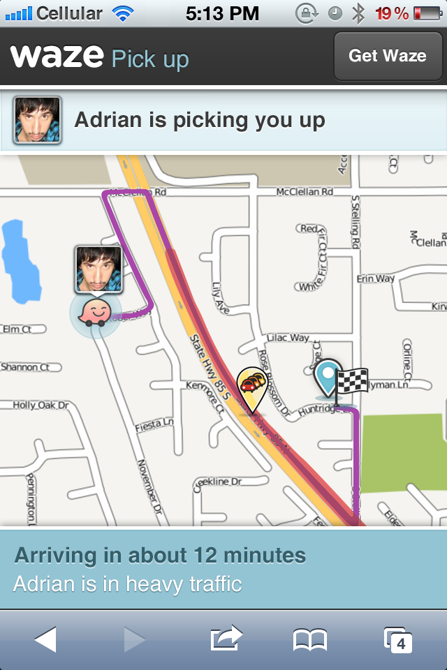 While you wait for your friend to pick you up at the bar, you can watch a live map of their route and get an ETA, even if you don’t have Waze. That last part being a key differentiator with, say, Lyft, which offers a live-ish view as you wait for your pink mustache ride to arrive.