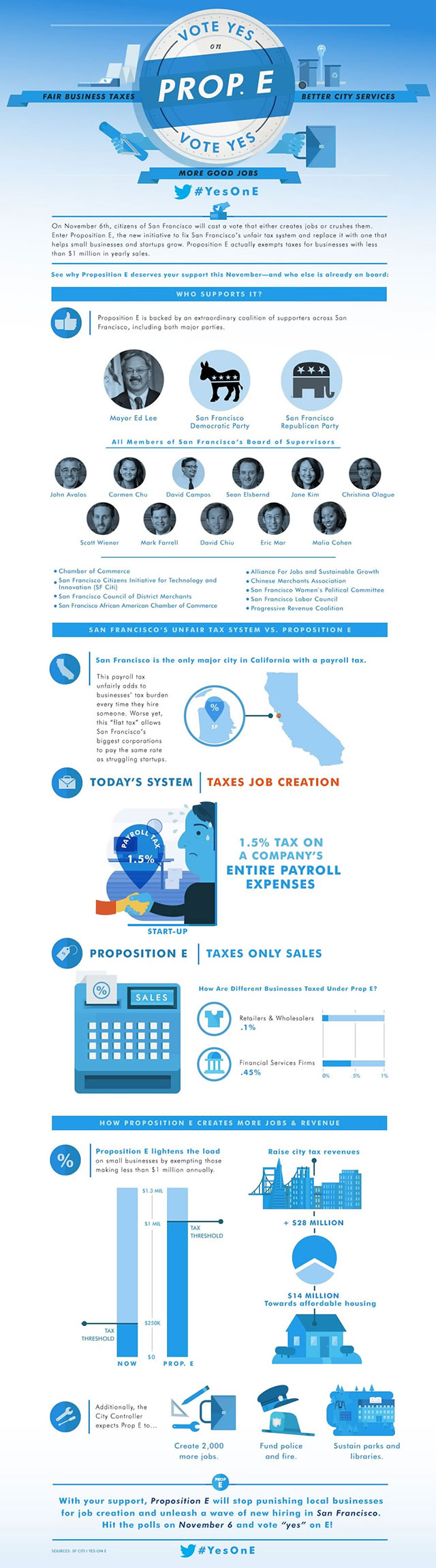 It’s virtually impossible to find anyone who doesn’t think Prop E is good for San Francisco. It’s supported by Mayor Ed Lee, the SF Republican Party, the SF Democratic Party and every single member of the SF Board of Supervisors.
