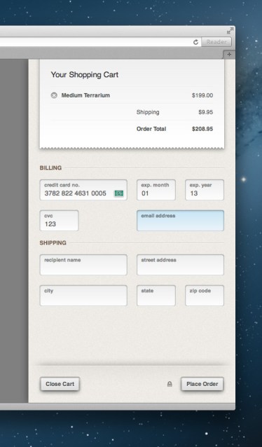 When a user comes to your site, there will be a sidebar that pops in from the right-hand side where they can enter in their payments information and immediately buy whatever it is that you’re selling.