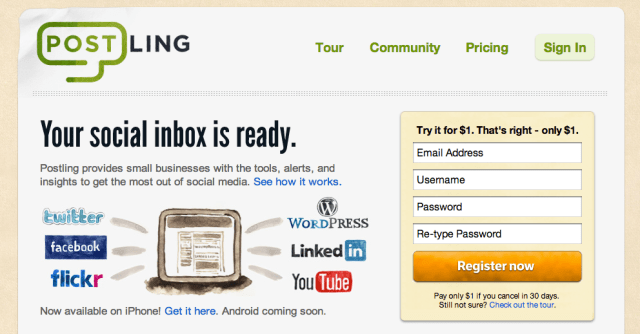 Basically, Postling has been trying to take HootSuite and simplify and streamline it by presenting social media management in a Gmail-style interface. The idea being that most management tools out there right now favor the stream approach and are far too bloated and noisy for most small business owners to use effectively.