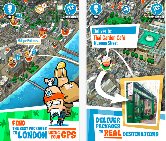In keeping with the real-world location theme, the gameplay of Go Deliver requires gamers to pick up their iPhones and travel around London collecting and delivering virtual packages to actual locations. For added spice, gamers can also compete against each other to pick up the same packages so there’s an incentive to get to delivery locations quickly. There will also be a social graph tie-in in the future so you can easily find Facebook buddies to play with.