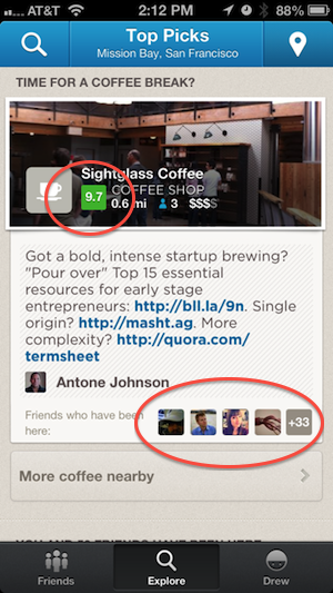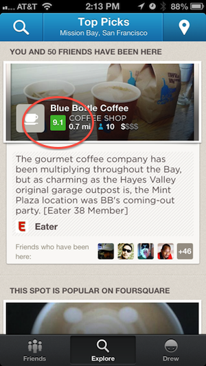 Today, the Foursquare iOS app got an update to tell you a new story — a list of places to go based on where you and your friends actually like to go. Until now, the Explore tab in the app sent you to a mix of places suggested by friends and their actions, along with what was close by. Now, there is a heavy focus on the places you’ve been to, but haven’t been back to in a while. It also adds a rating system between 1-10 based on interesting information everyone has pumped into the system.