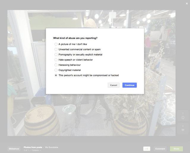What you see above lets you tell Google exactly what the issue is, and the addition of “this person may be hacked” is helpful. People can decide whether a friend is acting weird, not a machine. For example, if you saw me posting about how much I love strawberries, you know that it’s not me. Why? Because I’m allergic to strawberries.