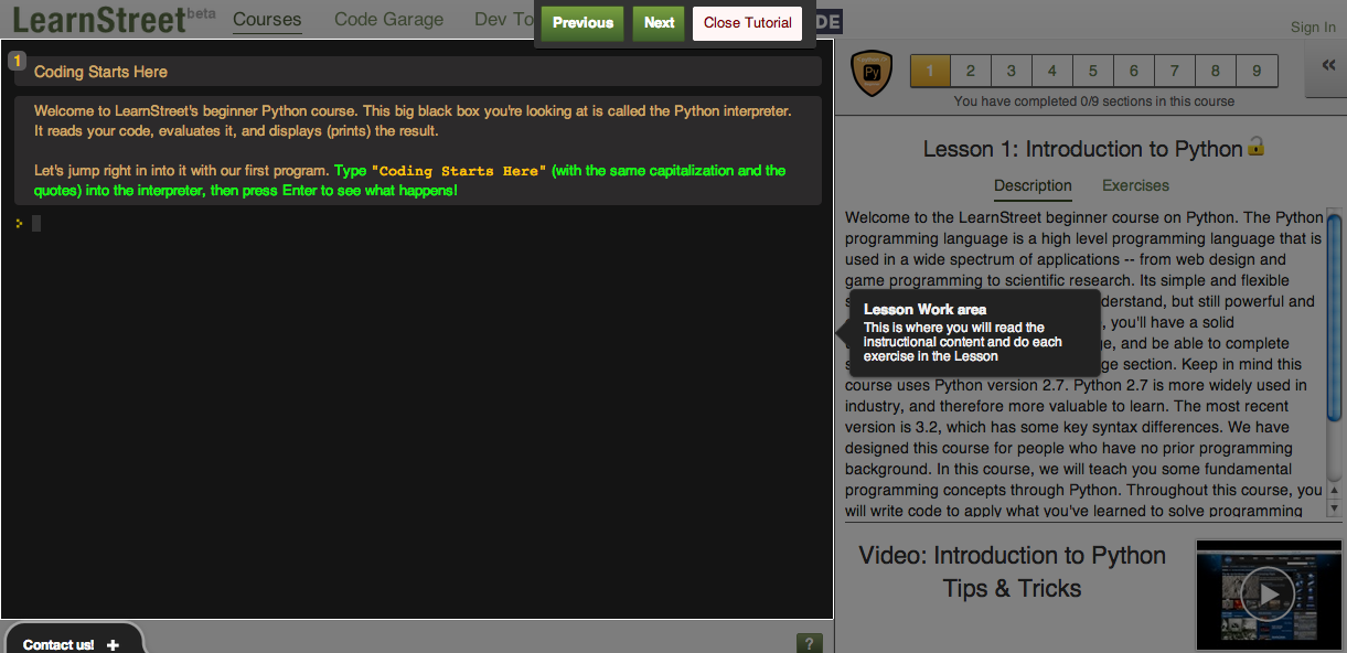 Basically, LearnStreet’s platform is broken down into two sections: Online courses that introduce beginning coders to basic programming concepts, syntax and so on, and its so-called “Code Garage,” a project-based learning tool that allows users to apply their newly-acquired knowledge to existing code and build widgets, games, puzzles and so on.