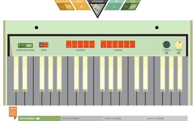Up at the top of the screen, users can switch a metronome off and on, adjust tempo settings, change key, swap instruments and access the online help. But the real fun comes from the social component – you aren’t meant just to entertain yourself with these things – you can actually play with friends in different locations at the same time. You grab the keyboard, they do guitar, another has the drums. You get the idea. It’s an online band…and a pretty awesome time waster, too. (Those TPS reports can totally wait.) The only thing missing? No way to record, or save your amazing creations – but you can share JAM via Facebook, Twitter and Google+.