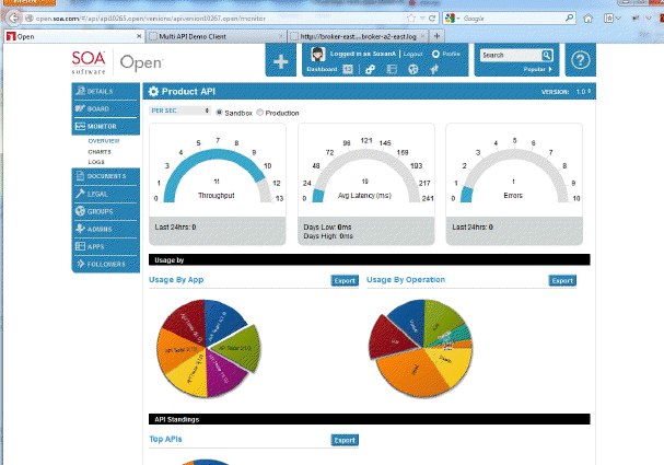 The proclamation is a shot across the bow of many an API provider — Apigee, Mashery and Layer 7 Technologies to name a few. According to SOA Vice President of Product Management Ian Goldsmith, Apigee and Mashery represent the “open API,” market that has mushroomed as more apps connect through RESTful APIs. He said their services are not suitable for enterprise APIs, as they don’t offer the end-to-end management that SOA offers. Layer 7, in Goldsmiths’s view, at its core is a run-time security platform that has pivoted to the API management market.
