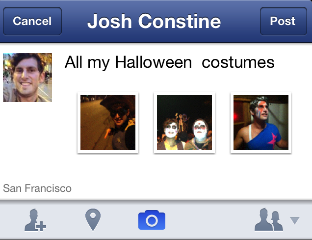 The latest features to get bumped up to the main stage were photo filters and multi-shot uploads from Facebook Camera, and swipe left to the see the buddy list from Facebook Messenger. Those both got added to the main Facebook for iOS app this week and are already in the Android version.