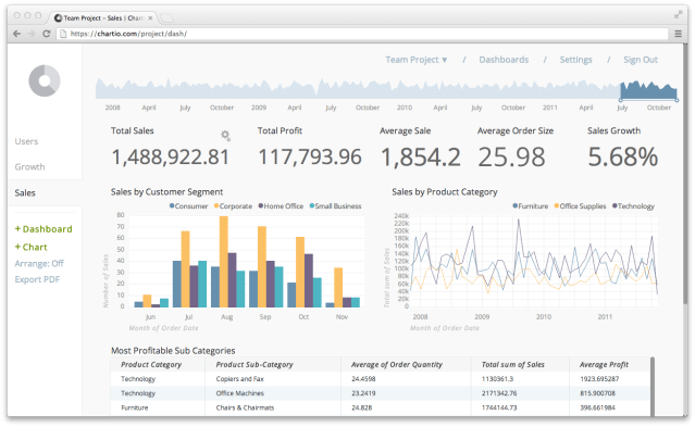 Fowler and Dan Levine, who now works at Accel Partners, founded the company in 2010. A year later, Chartio raised $3.15 million in a Series A round led by Avalon Ventures, with Bullpen Capital participating (which brought the company’s total funding to $4.38 million). Earlier in his career, Levine worked at TechCrunch as a research analyst. Alexia Tsotsis, who first covered the company when it called itself Chart.io, wrote that working on CrunchBase gave Levine the idea for starting the company.