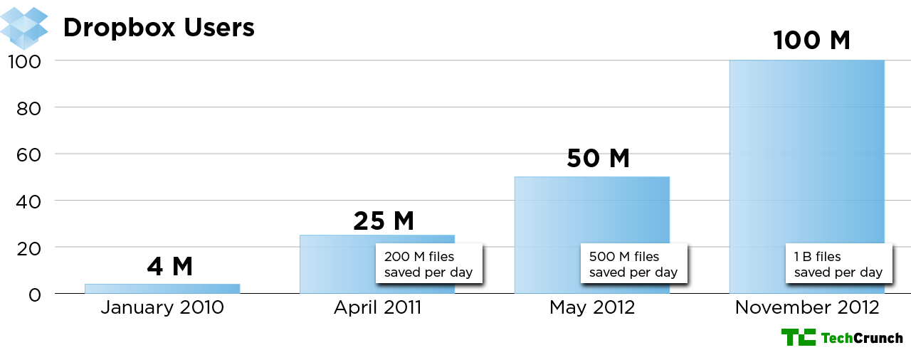 “It puts a quantitative spin on that feeling that we’re solving really important problems for a big chunk of the world,” not just Silicon Valley, Houston tells me. “Our users are trapeze artists, high school football coaches — I got cornered by a couple of theoretical physicists who said Dropbox lets them collaborate across the world and share their experiments’ results. They were raving about how it’s driving their research.”