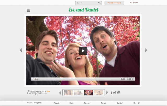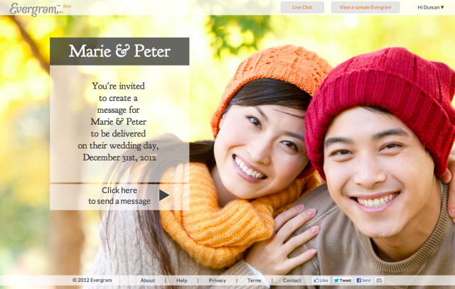 You may remember Evergram as the company whose co-founder, Duncan Seay, pitched the media in a wedding dress in the Startup Alley at this year’s TechCrunch Disrupt SF. The dress may have brought him attention, but the gimmick wasn’t necessary – Evergram can stand on its own as a startup worth noting. The first product from the service was a way for wedding guests, friends, and family to leave messages to newly married couples, sharing their personal memories, words of wisdom, and best wishes through text, photos, and videos aggregated in a shared digital album.
