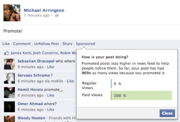 As an aside, I checked the promote fees on my own FB account. It’s a flat $50 and I have 350,000 subscribers. I promoted a test post – I like how it shows me how many paid (100%) v. unpaid (0%) views I have so far. Since Facebook is in control of both types of views it isn’t all that meaningful. Still, I wouldn’t feel like such a chump if I saw at least a few unpaid views. Cuban’s right, this has the appearance of shady.