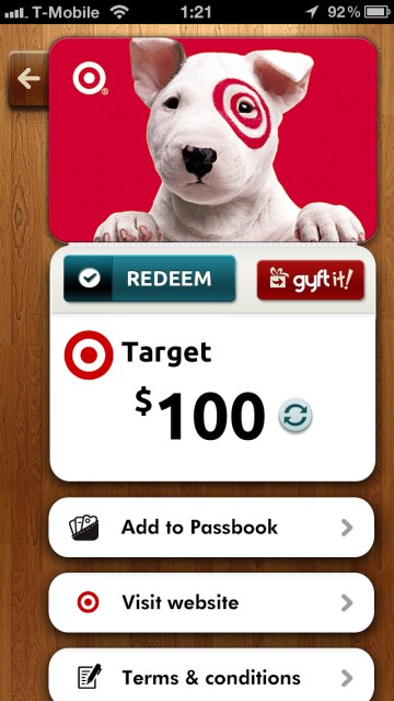 Gyft, which launched in September this year, reached over $1 million in gift cards stored on its system in just three weeks. The number is now higher, but the company declined to say by how much or how many downloads and active users it has on its platform today. However, MacDonald did tell us that following the iPhone Passbook integration, around one-third of users have pushed at least one card from Gyft to Passbook. Average users currently have around 2.6 cards total in service, but that number should grow to 3.5 or 4 cards after the holidays.