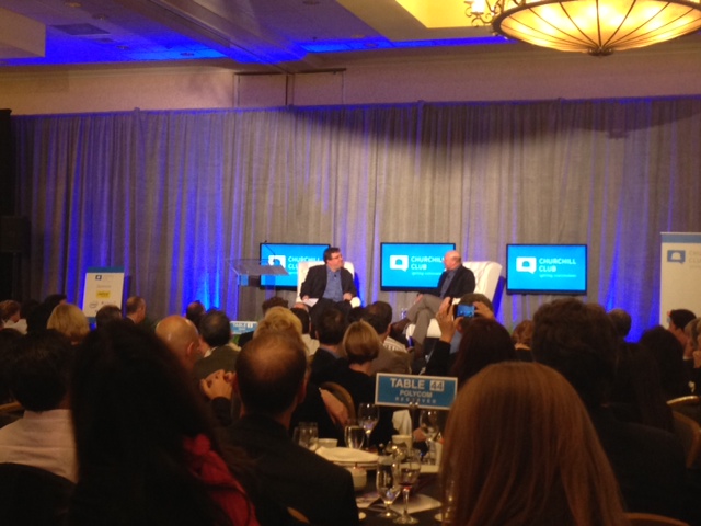 At the Churchill Club in Santa Clara, two tech titans sat down to have a conversation. LinkedIn founder Reid Hoffman interviewed Microsoft’s CEO Steve Ballmer at an event with “tech influencers and innovators,” and a bunch of of us press folk. Ballmer is riding on the release of Windows 8, Surface and the Windows 8 Phone, so there is plenty to talk about.