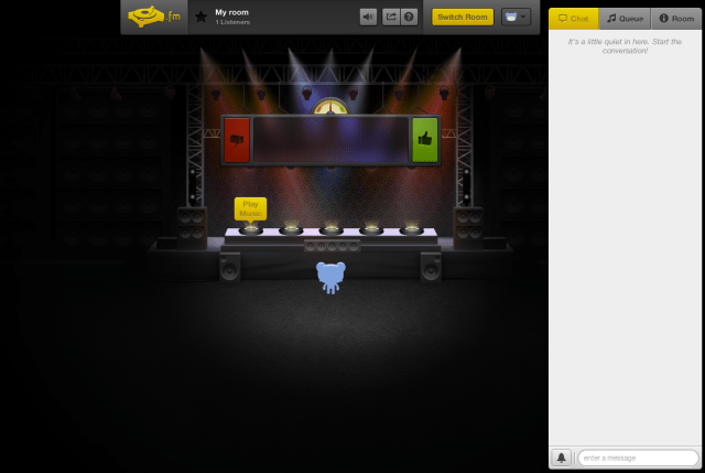 Rooms were previously capped at 200 listeners. With the latest updates, the first 200 users will have “a spot close to the stage” and can watch their little avatar bob their head to the music. Everyone else will listen in what Turntable.fm calls an overflow room. Users will still listen to the same music and have the ability to chat with the DJs, but not with the other users in the room. Like in real life, it’s first come, first serve.