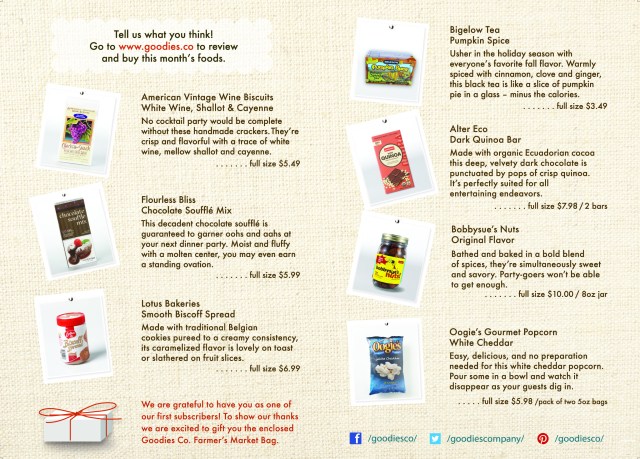 Goodies customers pay just $7 per month for a box of six to eight sample products, which would otherwise retail for $15. The price includes tax and shipping, making it one of the cheapest e-commerce food subscription services on the market today. To compare, the startup Love With Food, a graduate from the 500 Startups accelerator, charges $10 per month for a box with eight items. Pop-Up Pantry’s meal-focused box starts at $17 per month, and healthy snacks service Sprigbox begins at $26.95 per month, for a box of 10-13 items.