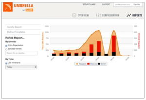 Typically, mobile workers can be vulnerable to attacks and snooping when connecting via WiFi networks outside of the office, which often lack encryption capabilities, so Umbrella offers a VPN service that encrypts their activity regardless of how (or where) they connect. The other advantage, Ulevitch says, is that Umbrella lives completely in the cloud and thus doesn’t require on-premise hardware; instead, it offers clients for Mac, PC and iOS (with Android in the works), directing traffic from employee devices onto a secure, clean network.