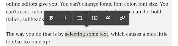 The editing functionality in-line is gorgeous. Simply hover over selected text for options: