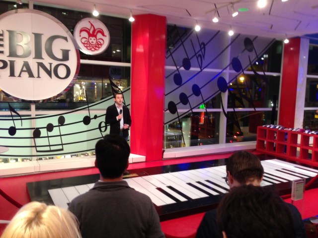 Tapjoy co-founder Lee Linden took the stage, on the giant piano made popular by Tom Hanks in Big, to make the announcement. The theme of the conference was partners and availability, confirming that Facebook is committed to its new Gifts product.