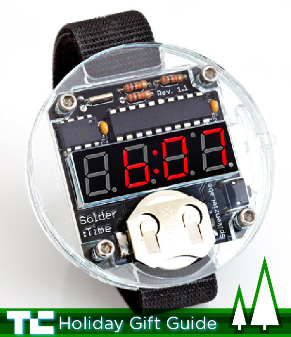 Geek parents will get a huge kick out of the Solder:Time watch kit from Spikenzie Labs. It’s a cute kit that contains all the parts you need to make a large, readable LED watch. Just grab a soldering iron on Christmas Day and get cracking.