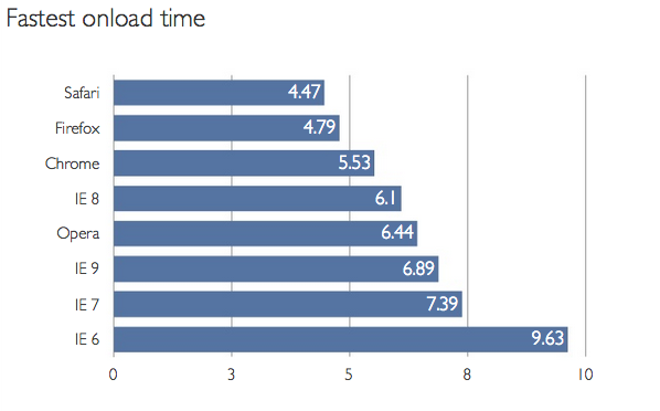 Torbit’s data also offers a look into performance by geography, including which states and countries have the fastest load times, as well as browsers. According to Torbit’s data, Safari clocks in as the fastest, followed by Firefox, Chrome and IE8. The fastest mobile browser? Opera Mini, with Chrome for iOS coming in second. Hilariously, the only mobile web pages that load in one second or less are error pages. In short, at this point, the mobile web does not = speed.