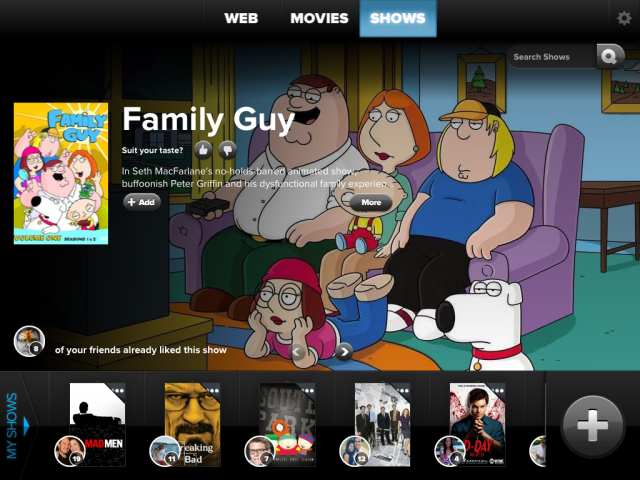 In addition to viewing videos, Plizy also wants to make it easy for users to share. It’s got the usual ability to explicitly share out through Facebook, Twitter, and email. But it also allows users to seamlessly share what they’re viewing through Facebook Open Graph. But, since privacy is so very important to its users, they are able to explicitly choose how much, and what, they’d like to share when first signing up. There’s also a social tab at the top right of the app to allow users to switch up their sharing settings at any time.