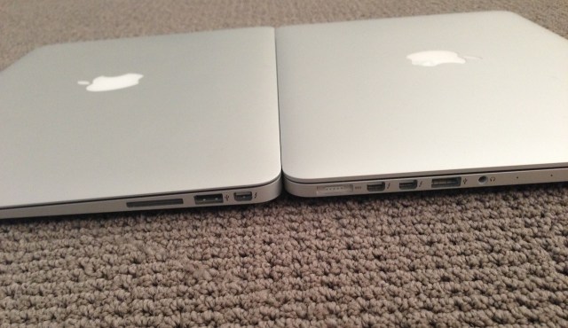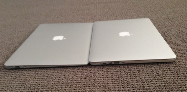 Above: the 13-inch MacBook Air (left) versus the 13-inch retina MacBook Pro (right — yes, the Air is slightly longer)