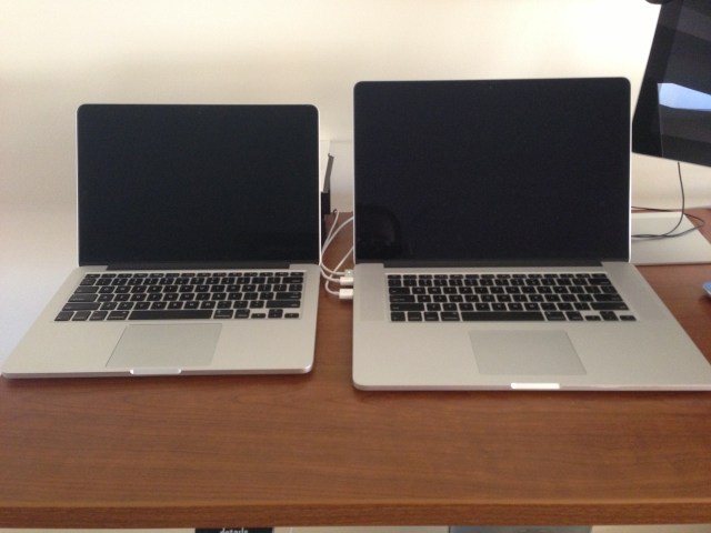 Above: the 13-inch retina MacBook Pro (left) versus the 15-inch retina MacBook Pro (right)