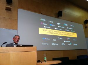 He is willing to touch on promising areas of research — machine learning being a discipline he believes will play an increasingly important role in building new generations of software systems. Machine learning techniques are already being used to build products — such as the Kinect gesture recogniser (which can determine whether you’re raising your elbow or your knee), and to power the Xbox’s recommendation engine for games, TV and movies (which crunches your viewing data to predict what else you might like). But in an age of big data and increasing complexity, machine learning technology is becoming an imperative for more and more applications.